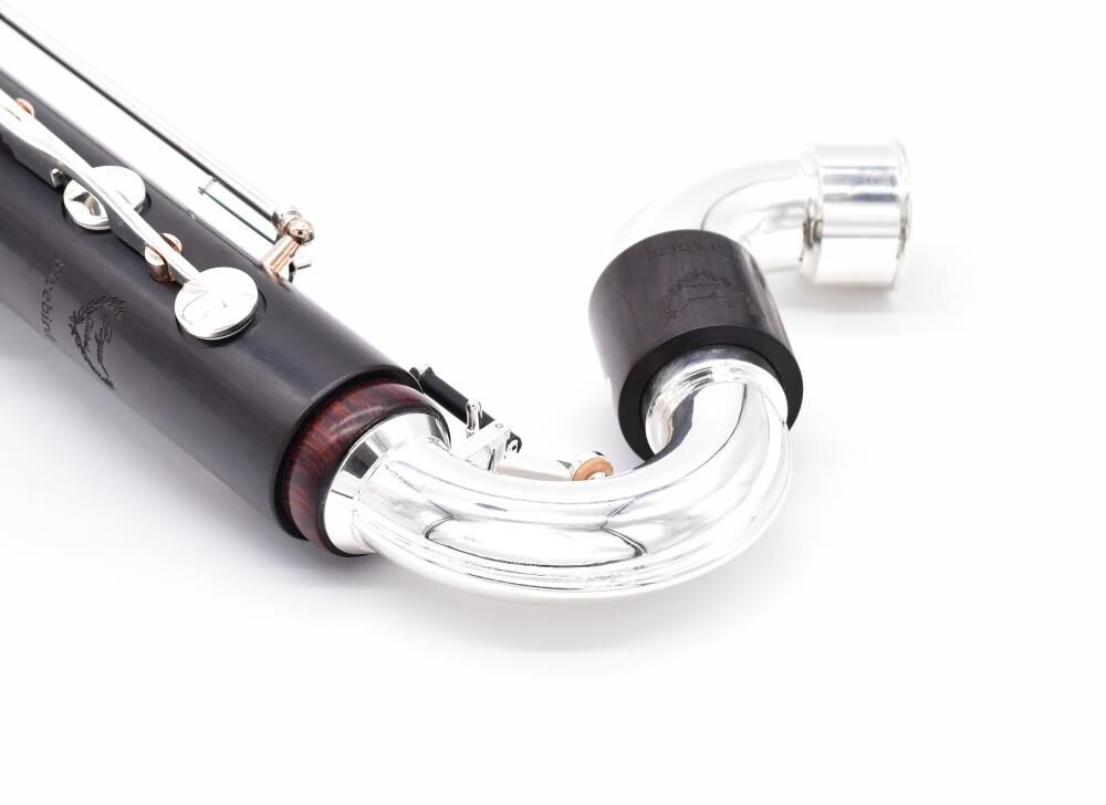 The Royal Global Firebird stands alone in the world of professional Low C bass clarinets. This premium instrument features naturally aged grenadilla wood, with Royal's proprietary ECO wood bell. It is secured with an interchangeable cork system that allows you to exchange the ECO wood bell for the metal bell flare. Compared to the Max or Polaris, the Firebird features a heavy mass neck and bell receiver that utilize a higher grade metal alloy. This metal, along with a stabilizing fin, increases resonance and stability. The Firebird bass clarinet comes standard with silver keys, rose gold posts, handmade leather pads with resonators, cocobolo ring at the neck receiver, premium leather case and Royal Global's 3 year warranty.